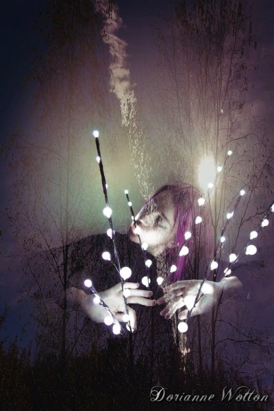 Pourquoi cette photo ? Les couleurs ont tout d’abord accroché mon regard. Elle créent une atmosphère presque fantastique. Et puis, dans son ensemble, elle pousse à la rêverie. La surimpression aide beaucoup, avec sa fumée (ou ses nuages, je fais mal la différence) et ses arbres immenses. Vous allez dire que j’ai beaucoup d’imagination, mais ça m’évoque vraiment une sorte d’esprit de la forêt… Vous l’aurez compris, cette photo m’a vraiment plu. Ne négligeons pas LE détail : la couleur de cheveux qui s’accorde à l’ensemble ;).